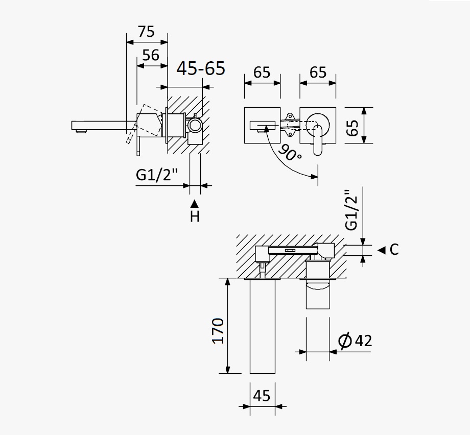 Bruma Lusa 2 Bateria umywalkowa podtynkowa 170 mm Sunrise 1019901SR