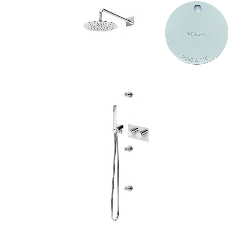 Bruma Lusa Zestaw natryskowy podtynkowa Ø 250 mm z 3 dyszami ściennymi i ze słuchawką Pure White 1876331PW