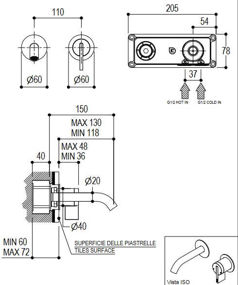 Ritmonio DOT316 Round Bateria umywalkowa podtynkowa stal nierdzewna PR50AL211INOX