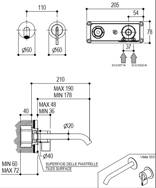 Ritmonio DOT316 Round Bateria umywalkowa podtynkowa stal nierdzewna PR50AL212INOX