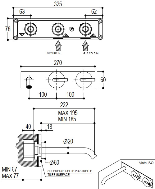 Ritmonio DOT316 Round Bateria umywalkowa podtynkowa stal nierdzewna PR50AK112INOX