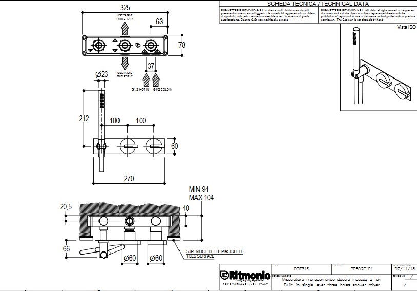 Ritmonio DOT316 Round Bateria wannowo-prysznicowa podtynkowa stal nierdzewna PR50GG101INOX