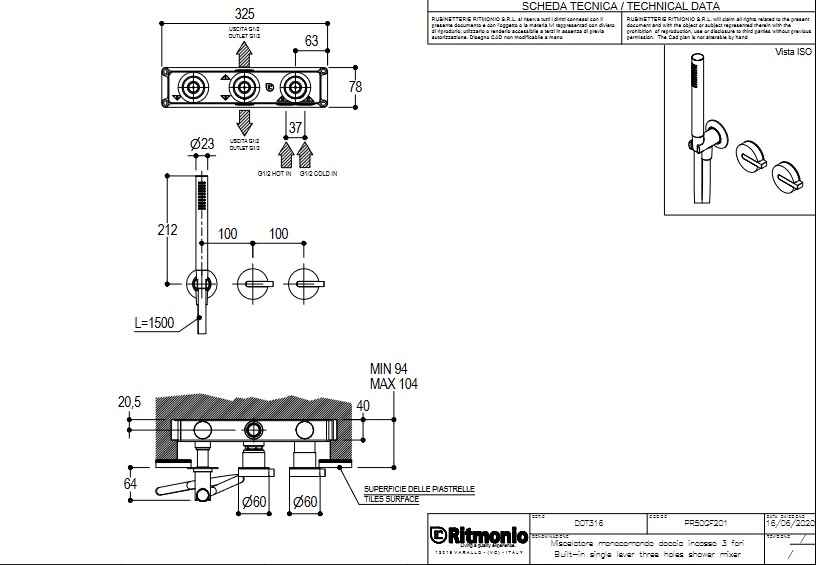 Ritmonio DOT316 Round Bateria wannowo-prysznicowa podtynkowa stal nierdzewna PR50GG201INOX