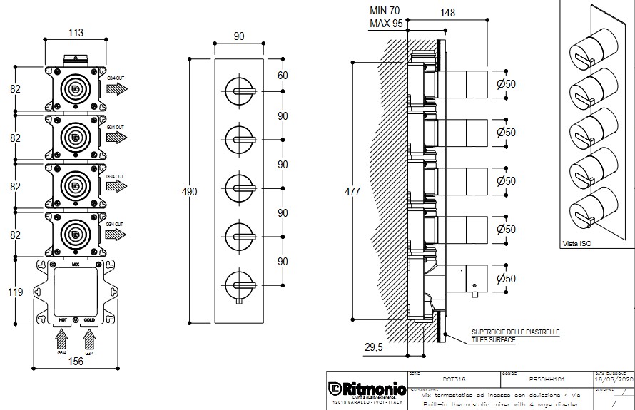 Ritmonio DOT316 Round Bateria wannowo-prysznicowa termostatyczna podtynkowa czarna stal nierdzewna PR50HJ101IBX