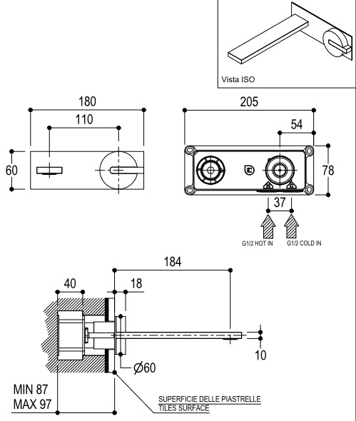 Ritmonio DOT316 Bateria umywalkowa podtynkowa stal nierdzewna PR50AL122INOX