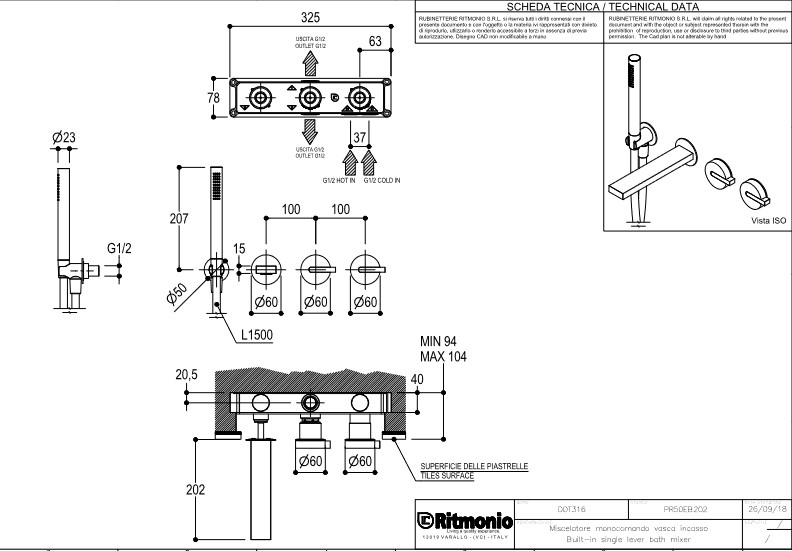 Ritmonio DOT316 Bateria wannowa podtynkowa stal nierdzewna PR50EC102INOX