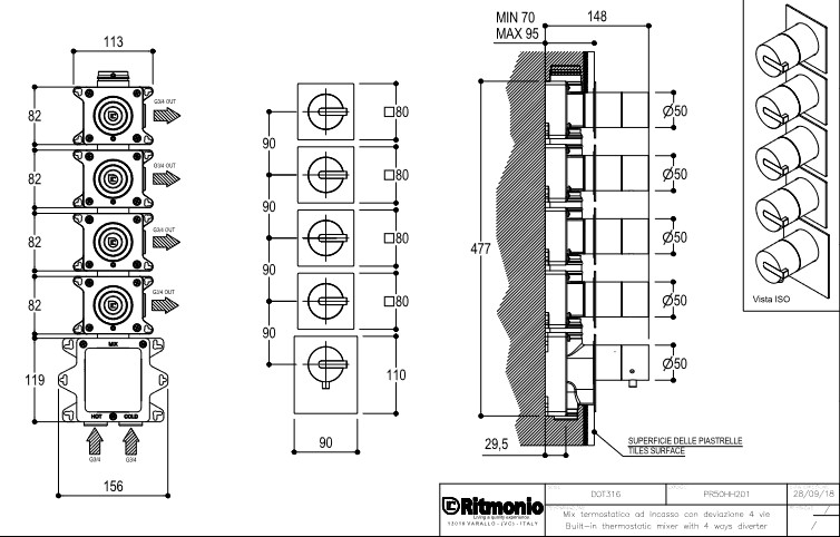 Ritmonio DOT316 Bateria wannowo-prysznicowa termostatyczna podtynkowa stal nierdzewna PR50HJ201INOX