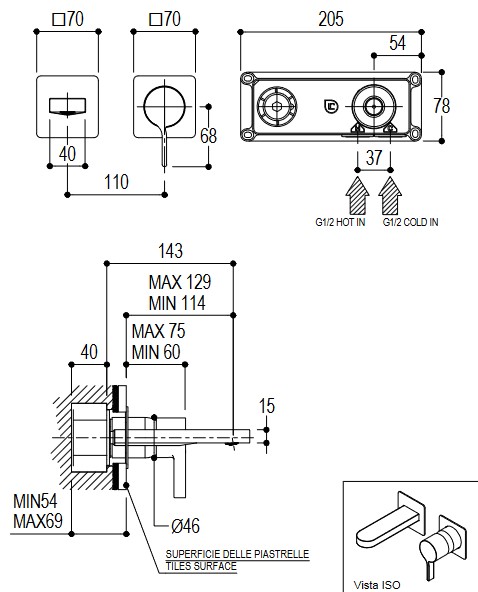 Ritmonio Tie Bateria umywalkowa ścienna podtynkowa chrom PR34AL201CRL