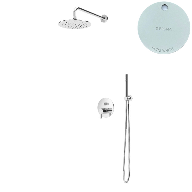 Bruma Leaf Zestaw prysznicowy podtynkowy z deszczownicą ścienna Ø 250 mm i słuchawką Pure White 1677221PW