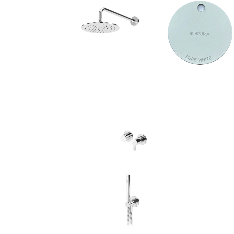 Bruma Leaf Zestaw prysznicowy podtynkowy z deszczownicą ścienną Ø 300 mm ze słuchawką Pure White 1673608PW