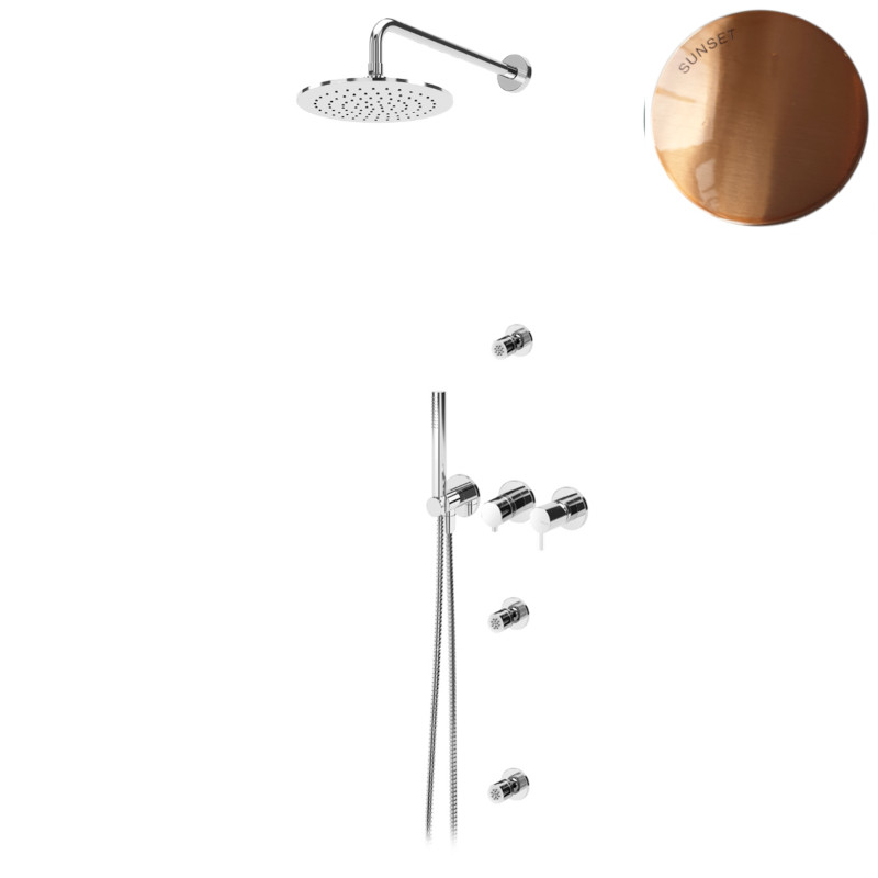 Bruma Leaf2 Zestaw prysznicowy podtynkowy z deszczownicą ścienną Ø 250 mm i 3 dysze podtynkowe Sunset 1673635SS