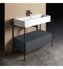 Axa COSA Stelaż podumywalkowy z umywalką z korkiem Click-clack i szufladą Czarny mat/Grey Matt S863007+MSC115GM+8641001+AF0015