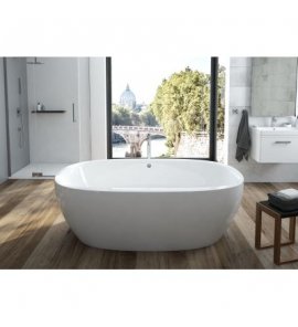 HOESCH iSensi Wanna akrylowa owalna wolnostojąca typu monoblock z obudową, z przelewem szczelinowym 190x120 cm biała 3823.010