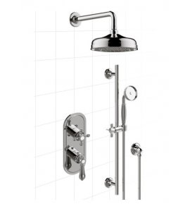 Graff Adley Zestaw natryskowy termostatyczny podtynkowy z deszczownicą Ø 205 mm na ramieniu i zestawem prysznicowym Chrom CAN01