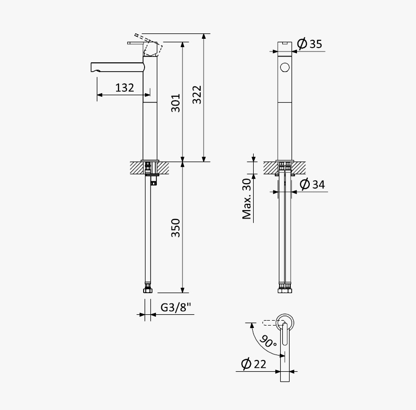 Wysięg wylewki: 132 mm