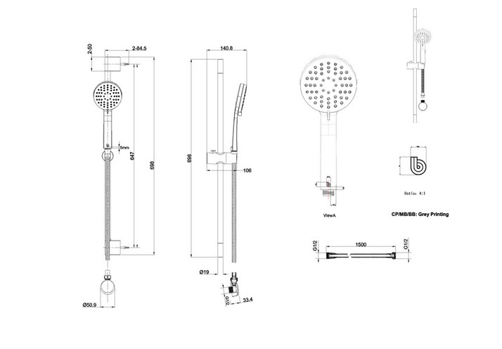 Britton Hoxton Zestaw prysznicowy ścienny z kolankiem chrom HOX.053CP