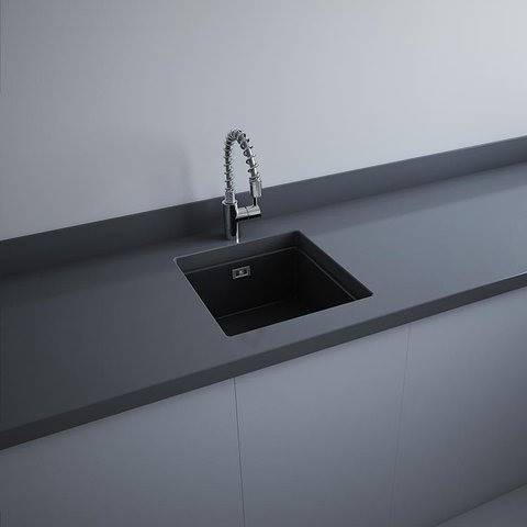 Rak Ceramika Silvia Zlewozmywak ceramiczny jednokomorowy 45x48 czarny mat + syfon SILVCZM
