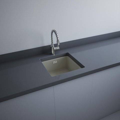 Rak Ceramika Silvia Zlewozmywak ceramiczny jednokomorowy 45x48 beż mat + syfon SILVBEM