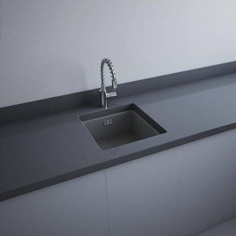 Rak Ceramika Silvia Zlewozmywak ceramiczny jednokomorowy 45x48 szary mat + syfon SILVSZM