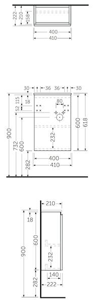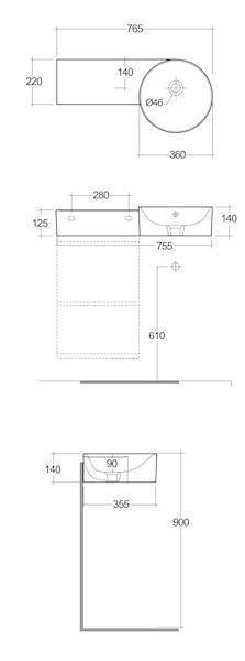 Rak Ceramika Petit Umywalka 77x36 z blatem i szafką podumywalkową 40x22 grey elm PET177JOY040EGY
