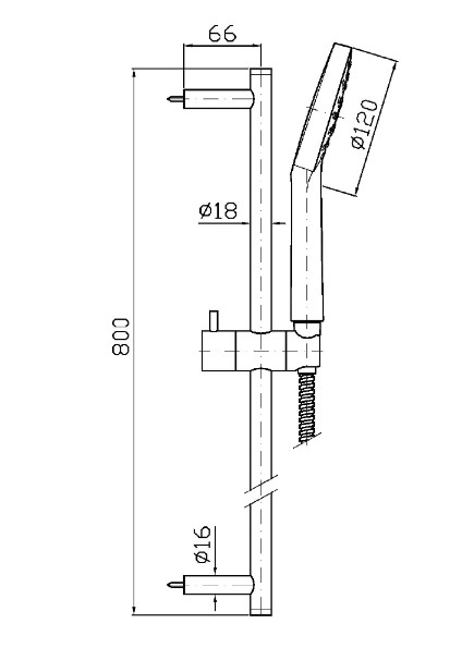 Drążek kompletny o długości 800 mm, regulowany uchwyt ze słuchawką Z94740, wąż natryskowy 1500 mm.