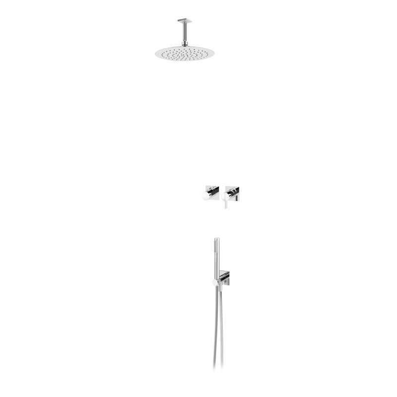 Zestaw natryskowy z deszczownicą sufitową, baterią podtynkową, przyłącze kątowe z uchwytem i słuchawką