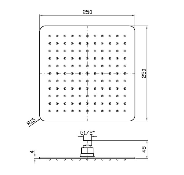 Zucchetti Deszczownica kwadratowa 250x250 mm sufitowa chrom Z94274