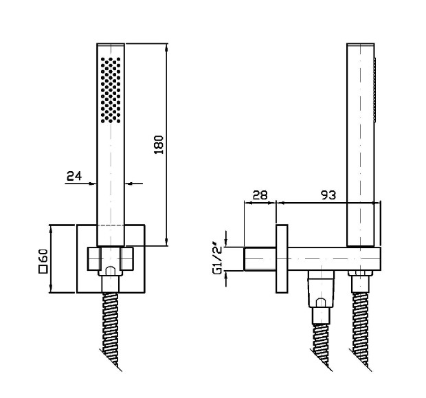 Przyłącze kątowe z uchwytem słuchawki, mosiężna słuchawka Z94178, wąż.