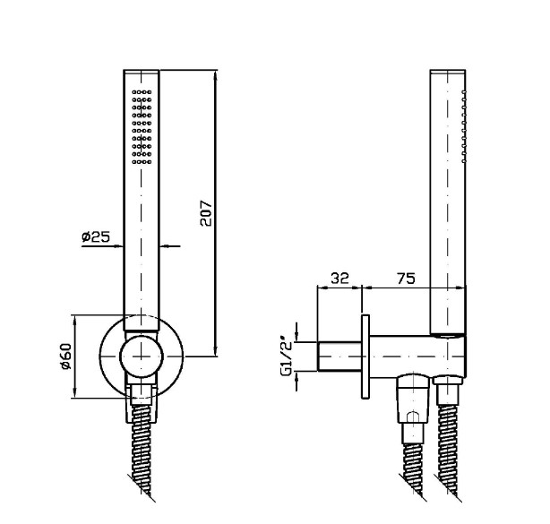 Przyłącze kątowe z uchwytem słuchawki, ABS słuchawka prysznicowa Z94727, wąż.