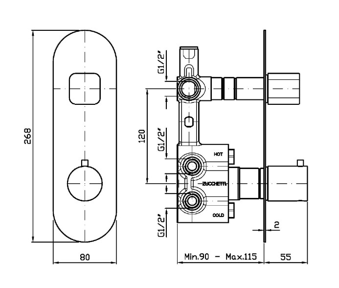 Zucchetti Brim Bateria natryskowa termostatyczna podtynkowa 1/2" z zaworem odcinającym element zewnętrzny chrom ZBR663