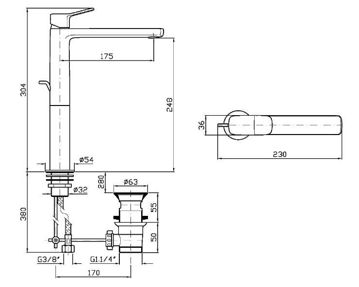 Zucchetti Brim Bateria umywalkowa jednouchwytowa wysoka z korkiem 1¼” chrom ZBR309