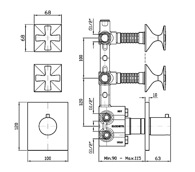 Zucchetti Bellagio Bateria natryskowa termostatyczna podtynkowa 1/2" z 2 zaworami odcinającymi element zewnętrzny chrom ZB1660