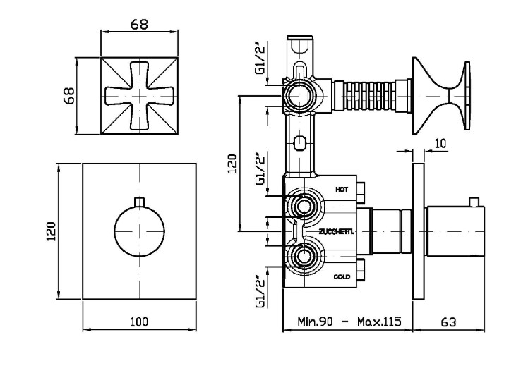 Zucchetti Bellagio Bateria natryskowa termostatyczna podtynkowa 1/2" z zaworem odcinającym element zewnętrzny chrom ZB1659