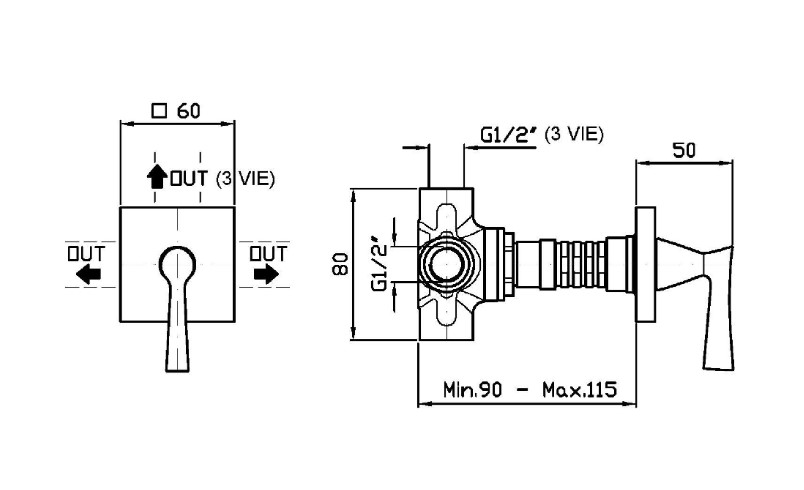 Zucchetti Bellagio Przełącznik 2-drogowy podtynkowy ½'', bez otwarcia/zamknięcia wody chrom Z94585