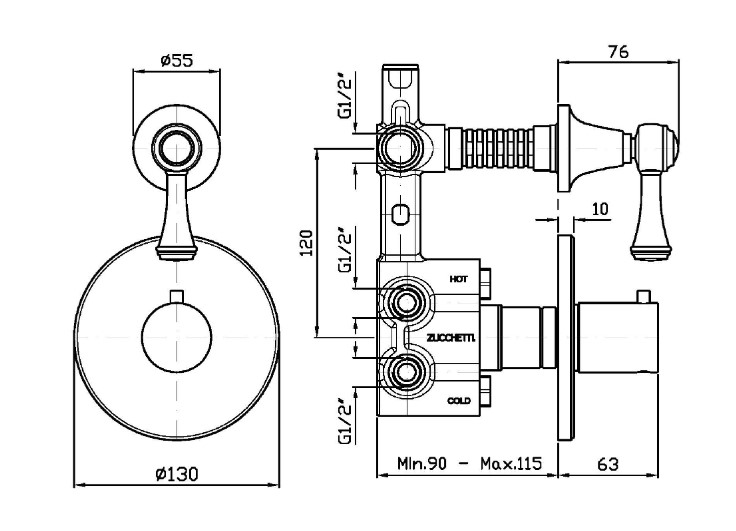 Zucchetti Agora Classic Bateria natryskowa termostatyczna podtynkowa 1/2" z zaworem odcinającym element zewnętrzny chrom ZAM659