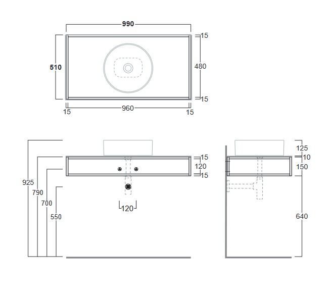 Stelaż należy uzupełnić blatem ceramicznym w dostępnym kolorze o odpowiednim rozmiarze (100)