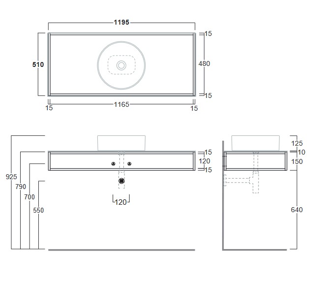 Stelaż należy uzupełnić blatem ceramicznym w dostępnym kolorze o odpowiednim rozmiarze (120)