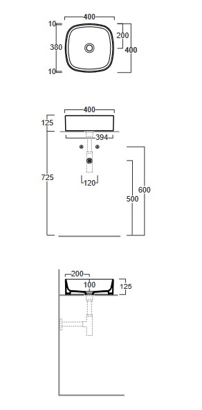 Simas Folio Umywalka stawiana na blat kwadratowa 40x40x12,5 cm nero matt FO03.65