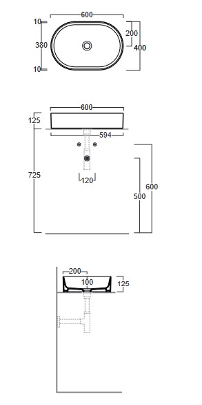 Simas Folio Umywalka stawiana na blat owalna 60x40x12,5 cm nero FO02.26