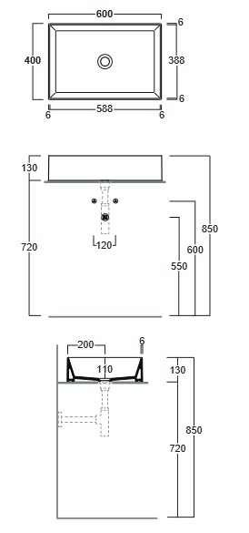Simas Agile Umywalka stawiana na blat prostokątna 60x40x13 cm biały AG60