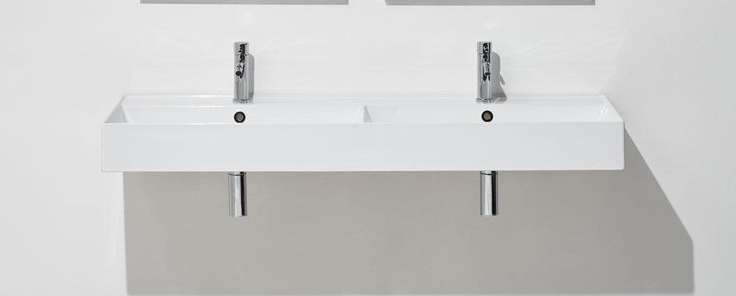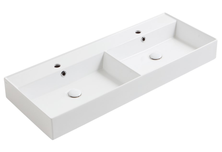 Simas Agile Umywalka stawiana na blat/wisząca podwójna z otworami na baterię prostokątna 121x46x13 cm biały AG121D