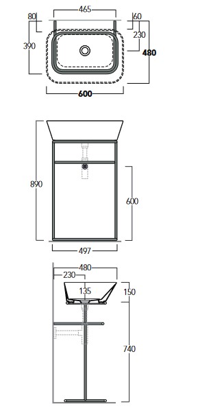 Simas Wave Stelaż wolnostojący pod umywalkę WA04 49x39x74 cm nero matt WASA04