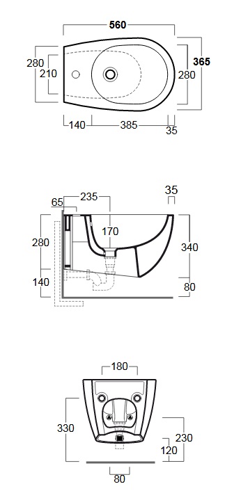 Simas Vignoni Bidet wiszący z otworem na baterię 56x36,5x34 cm antracite matt VI19.56