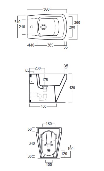 Simas BadenBaden Bidet ścienny z otworem na baterię 56x36x42 cm nero matt BB04.65