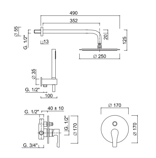 Simas Oslo Zestaw prysznicowy podtynkowy z przełącznikiem, ramieniem, deszczownicą i słuchawką z uchwytem chrom OSSDID.CC