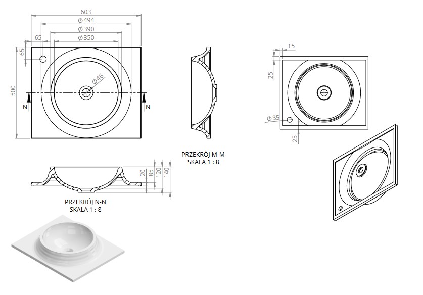 Istnieje możliwość zakupu umywalki nablatowej gładkiej