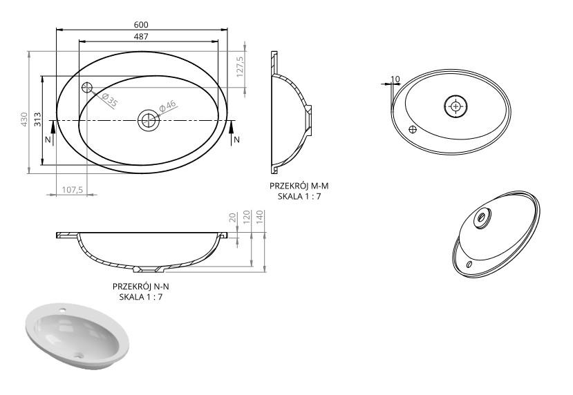 • Montaż: Wpuszczany w blat