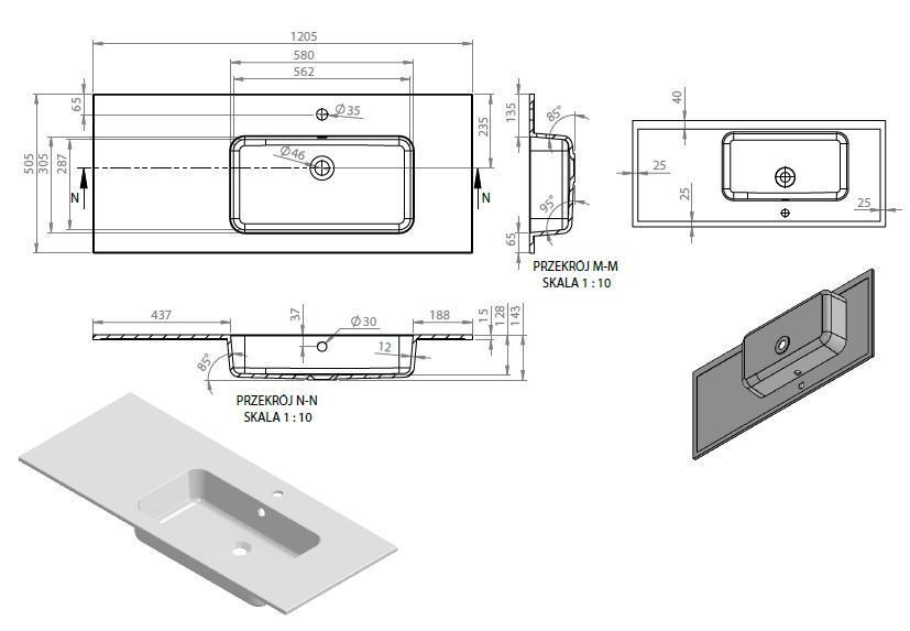 Istnieje możliwość zakupu umywalki w rozmiarze: