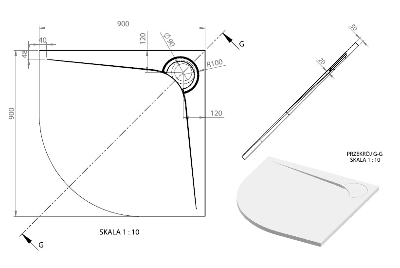 Vayer Boomerang Brodzik prysznicowy półokrągły 90x90 cm biały 090.090.002.2-3.0.0.0.0