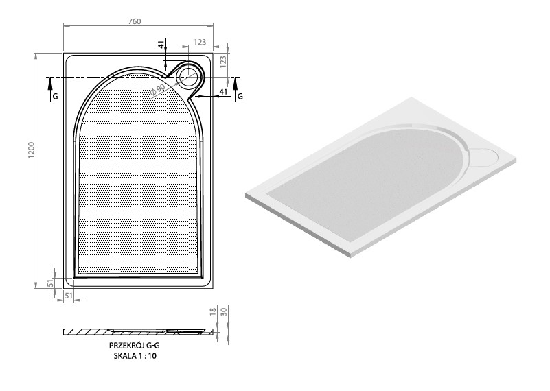 Vayer Virgo Brodzik prysznicowy prostokątny 120x76 cm biały 120.076.001.2-1.0.0.0.0